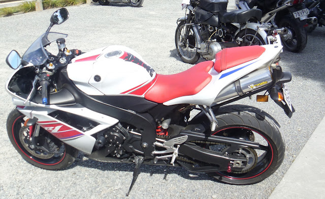 This is the photo of the earliest members of Ulysses Club and the newest members of the Club. Liz and Rob, Middle,Gordy Elcock (CHCH) has attended every Beavertown Rally for 21 years kneeling in front- he is #25, Charlie Brown # 4 next to Liz, and Barry Hamilton # 3 next to Rob, both from Nelson.